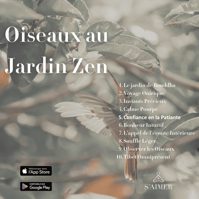 « Oiseaux au Jardin Zen » est remplie de chants d'oiseaux, de bols tibétains, de carillons et de sons magiques pour vous détendre et revitaliser votre énergie.